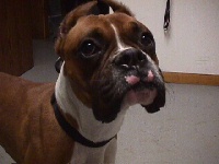 AND HAS NATURAL EARS AND A DOCKED TAIL. SHE HAS ONE COMPLETELY BLUE EYE